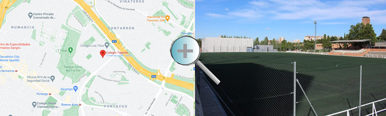 Situado en el barrio de Vallecas, con salidas de la M30 y la A3, el colegio Tajamar dispone de un campo de fútbol 11 de césped artificial en perfectas condiciones, vestuarios y gradas.