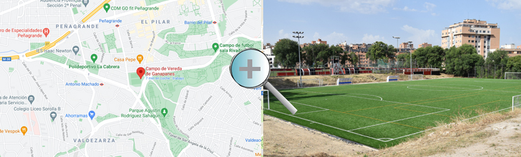Situado al final de la Calle Sinesio Delgado, el campo municipal Vereda de Ganapanes es la sede del club UD Adarve. Cuenta con cuatro magníficos campos de fútbol 7 de césped artificial, dos de ellos de reciente renovación. A solo 7 minutos en coche desde Plaza Castilla. Dispone de aparcamiento privado, vestuarios, bar y terraza.