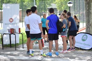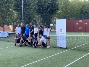 Mientras finalizaban los grupos y previo paso a las eliminatorias de pádel, un grupo de 16 chicos y chicas, compañeros de Sonnedix, participaron en la jornada team building que organizamos desde Business Sports. La jornada Team building consistió en juegos por equipos con el objetivo de cohesionar a los compañeros, mejorar el trabajo grupal y lograr objetivos comunes a través de la práctica deportiva.